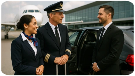 Zero-delay philosophy: flight and arrival tracking, driver ready at “wheels down.”